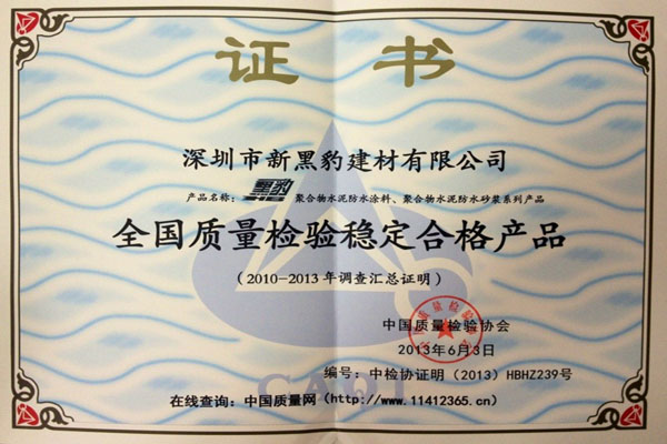 《全國(guó)質(zhì)量檢驗(yàn)穩(wěn)定合格產(chǎn)品》證書