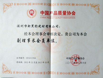 中國產(chǎn)品質(zhì)量協(xié)會副理事長單位證書