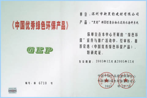 中國優(yōu)秀綠色環(huán)保產(chǎn)品