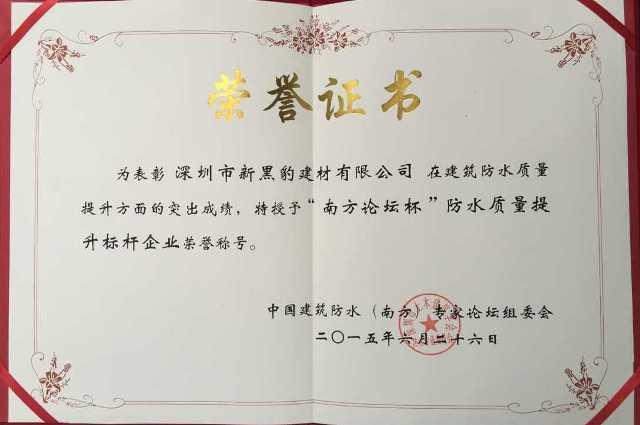 “南方論壇杯”防水質(zhì)量提升標(biāo)桿企業(yè)