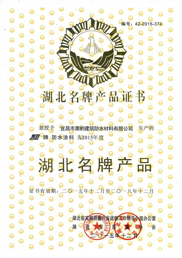2015年度湖北省名牌產品
