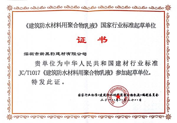 熱烈慶賀我公司成為《建筑防水材料用聚合物乳液》的起草單位