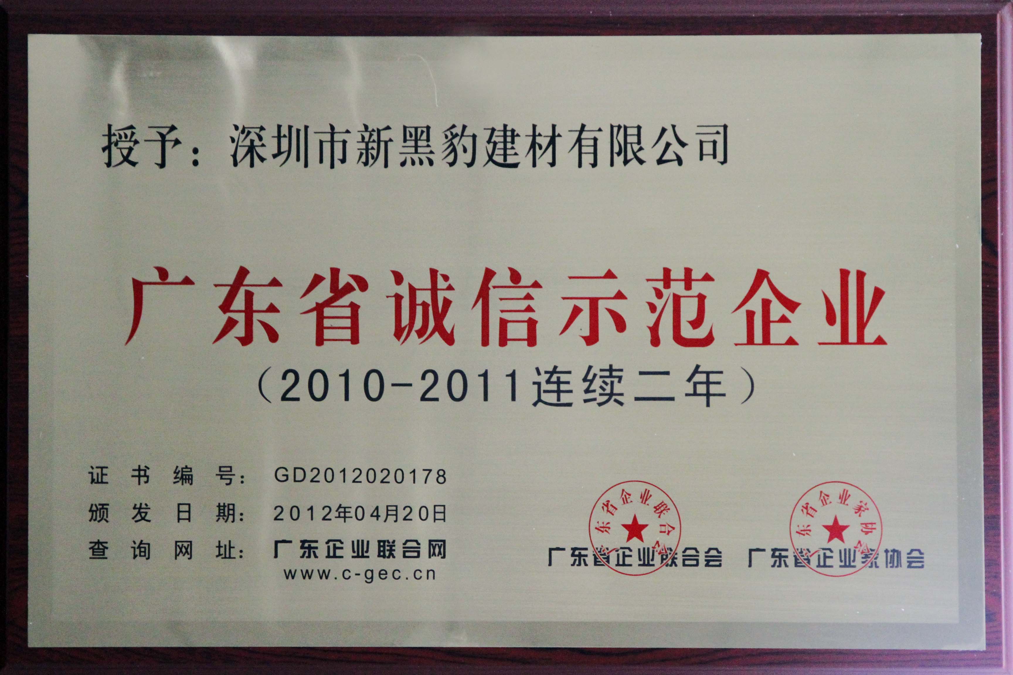 為深入貫徹落實(shí)黨的十七屆六中全會和省委十屆十一次全會精神,促進(jìn)我省企業(yè)和企業(yè)家在“十二五”時期加快轉(zhuǎn)型升級,建設(shè)幸福廣東,構(gòu)建全省企業(yè)誠信體系以及發(fā)揮雇主組織有效參與社會管理的作用,廣東省企業(yè)聯(lián)合會、廣東省企業(yè)家協(xié)會決定對為廣東經(jīng)濟(jì)社會發(fā)展作出突出貢獻(xiàn)的2011年度廣東省優(yōu)秀企業(yè)、優(yōu)秀企業(yè)家、最佳誠信企業(yè)、誠信示范企業(yè)、先進(jìn)雇主組織予以表彰。 經(jīng)認(rèn)真評選推薦和總隊(duì)嚴(yán)格審核,深圳市新黑豹建材有限公司光榮的獲得了“2011年度廣東省誠信示范企業(yè)”榮譽(yù)稱號!