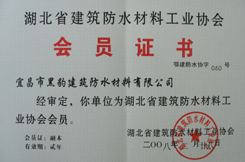 2008年3月28日,我公司宜昌分公司被認定為“湖北省建筑防水材料工業(yè)協(xié)會”會員單位,我公司同時還是“中國建筑學會防水技術(shù)專業(yè)委員會”會員單位。