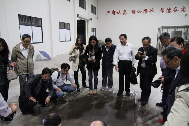 在我公司董事長王榮柱、總經(jīng)理王俊以及工程總監(jiān)等的全程陪同下,專家們參觀了我公司控股的公司宜昌市黑豹建筑防水材料有限公司、生產(chǎn)車間、實驗室等并進(jìn)行了座談,并前往宜昌工地現(xiàn)場觀摩噴涂速凝橡膠瀝青防水涂料演示過程,王榮柱董事長將控股公司宜昌市黑豹建筑防水材料有限公司情況作了具體介紹,專家們對新黑豹公司務(wù)實、追求技術(shù)進(jìn)步、創(chuàng)新等方面表示贊賞。專家團(tuán)一行還專門考察了宜昌天璽龍閣工地的地下室,采用噴涂速凝橡膠瀝青防水涂料施工。