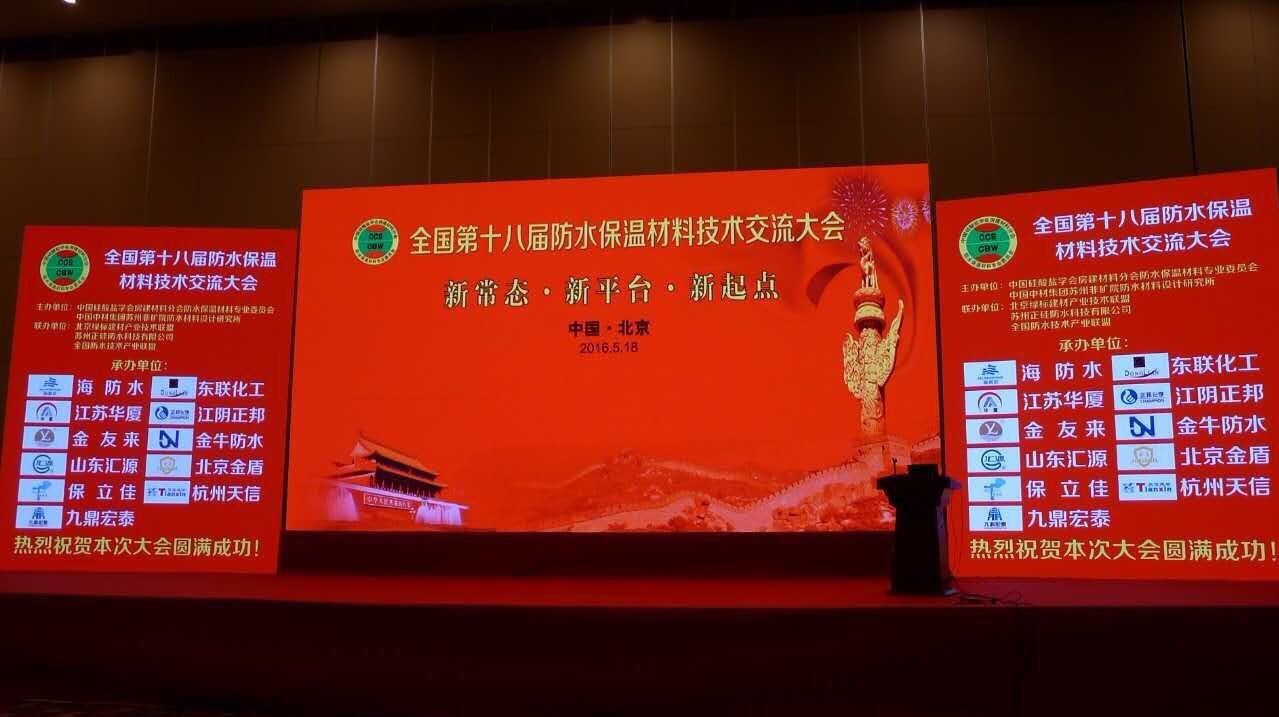 2016年5月19日,以“新常態(tài)、新平臺(tái)、新起點(diǎn)為主題的全國(guó)第十八屆防水保溫材料技術(shù)交流大會(huì)”在北京昌平九龍山莊舉行。