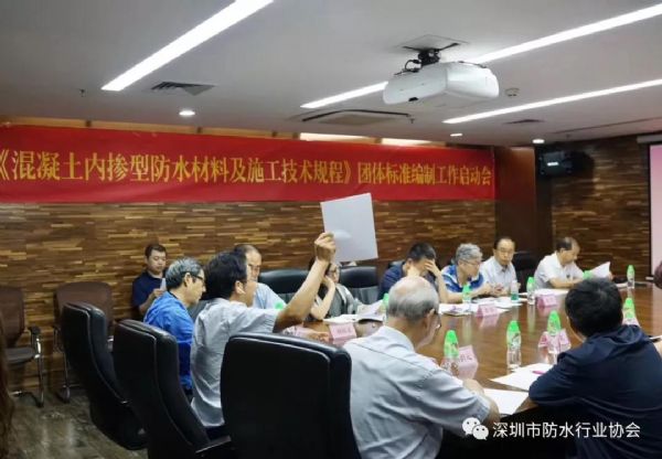 2019年5月16日,在深圳市設(shè)計(jì)大廈12樓會(huì)議室,深圳市防水行業(yè)協(xié)會(huì)組織召開了《混凝土內(nèi)摻型自修復(fù)防水材料及施工技術(shù)規(guī)程》團(tuán)體標(biāo)準(zhǔn)編制工作的啟動(dòng)會(huì)議。